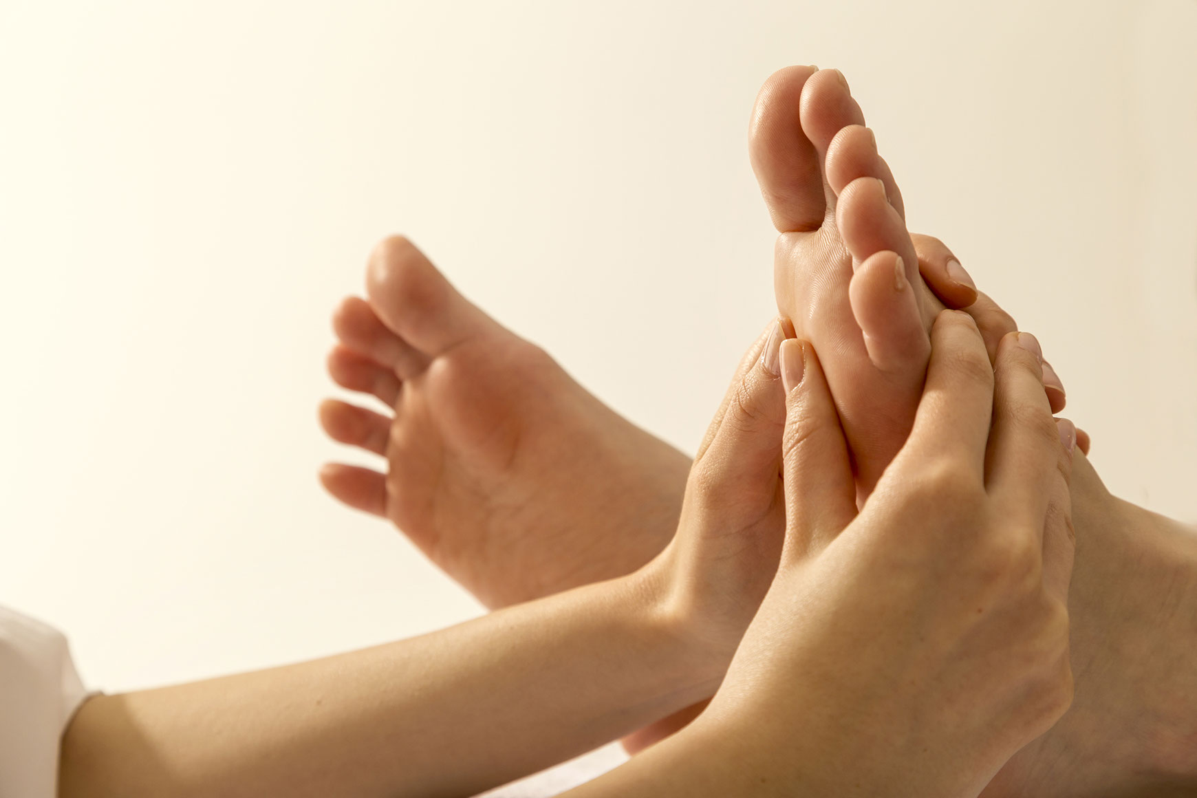 Mit einer speziellen Grifftechnik werden die Reflexzonen am Fuss behandelt.