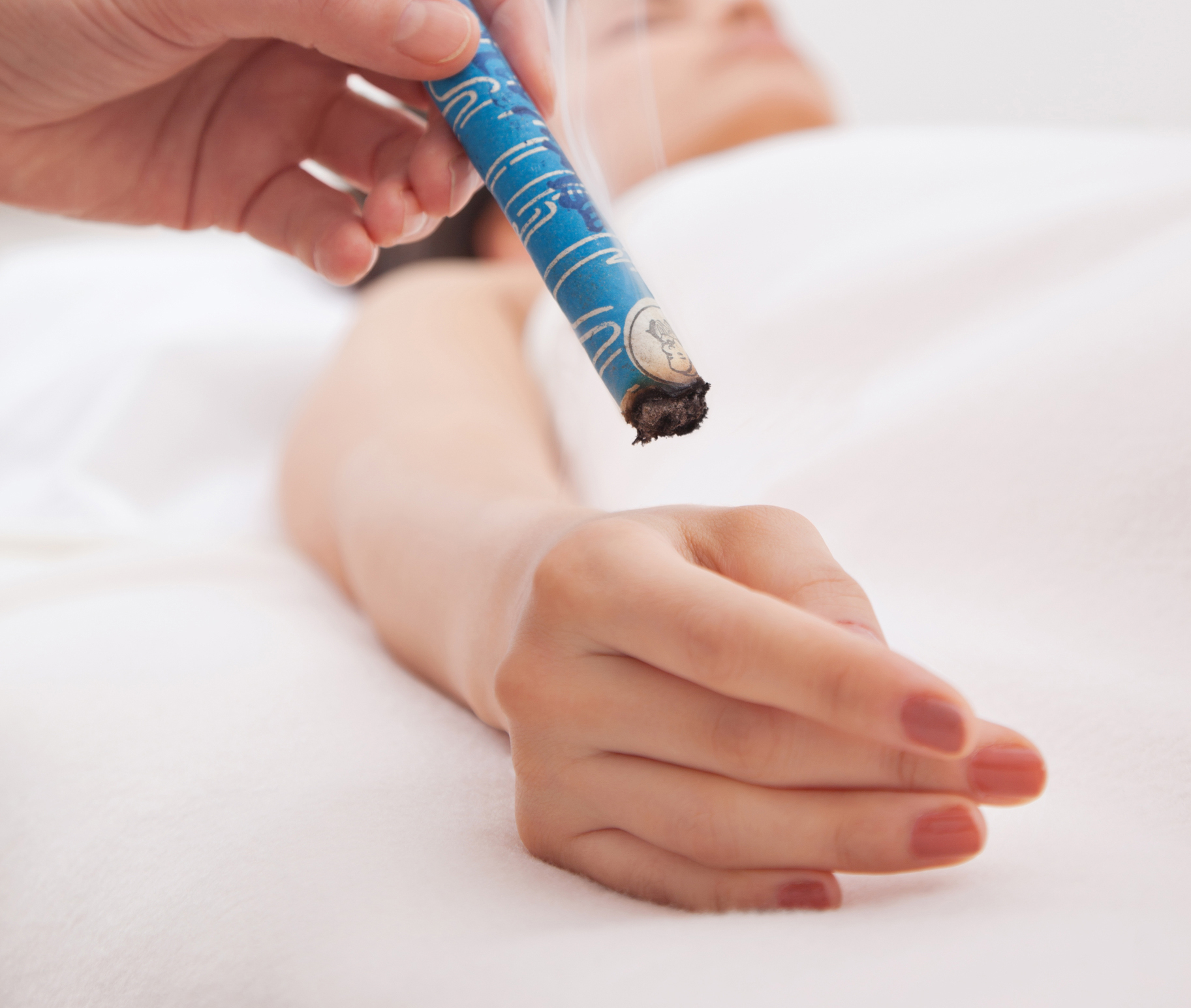 Dabei werden bestimmte Akupunkturpunkte mit der Beifusskraut-Zigarre erwärmt. Die Haut wird aber nicht berührt. Es entstehen keine Verbrennungen!